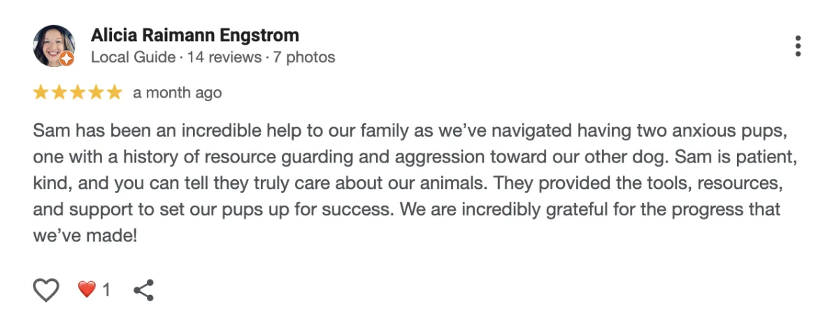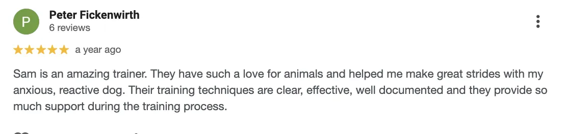 A little bit about my method and approach: I am a welfare-based, force free trainer. I focus on meeting all of a pet's needs, teaching them skills to help navigate the world, and setting them up for success. My job is 85% educating you about your pet. I never use or recommend punishment techniques like prong collars or e-collars. If you are a pet parent who uses them now - I am happy to work with you, we will work together to help your pet feel safe and learn skills so you don't need to rely on those tools.